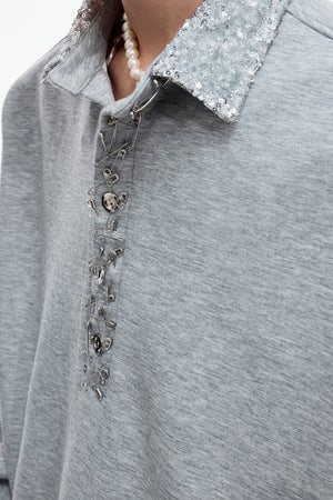 Sequin Pin Detail Polo Sweatshirt