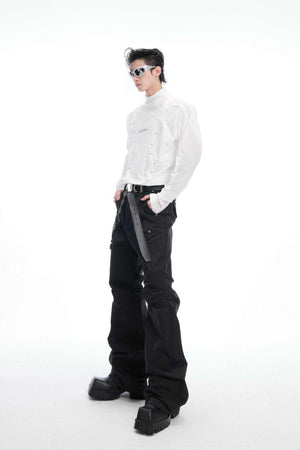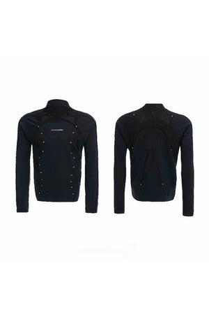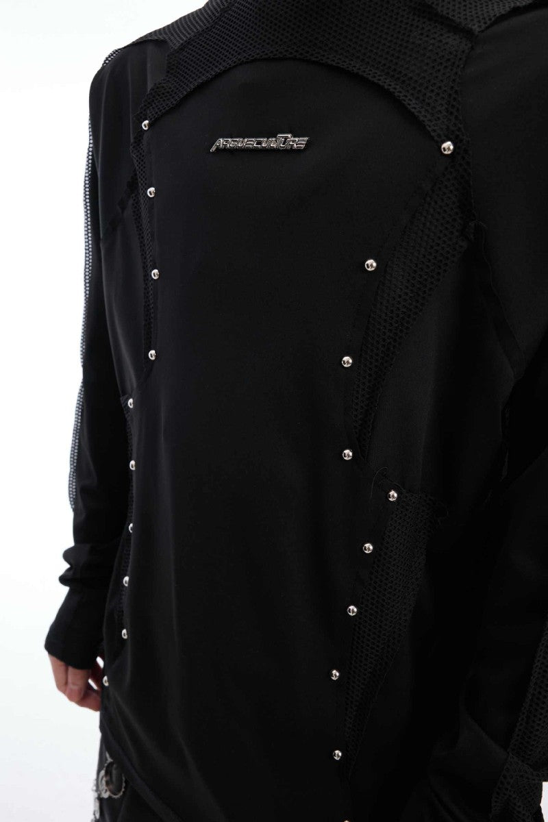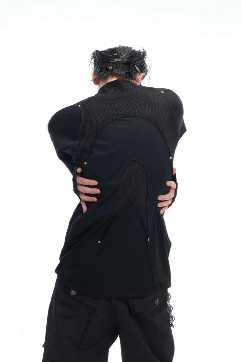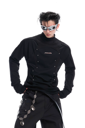 Deconstructed Mesh Panel Studded Turtleneck Tee