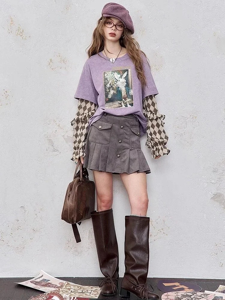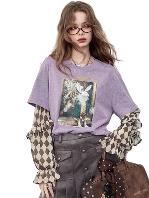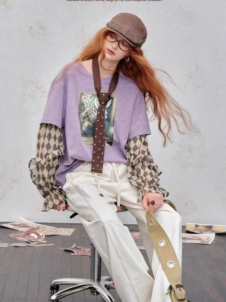 Vintage-inspired purple long sleeve tee with a relaxed fit for effortless retro style.