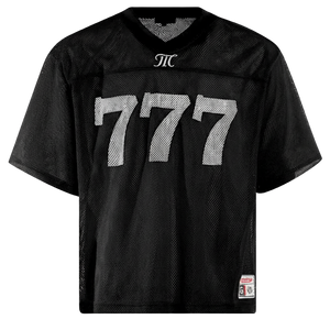 Channel luck and street style with this black mesh jersey, featuring a bold "777" graphic for an effortlessly cool look.