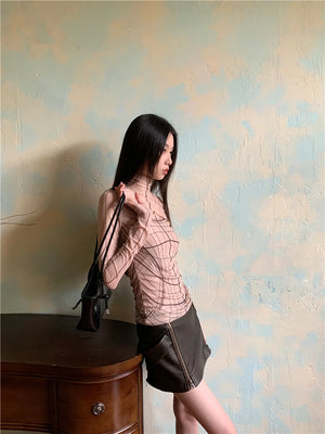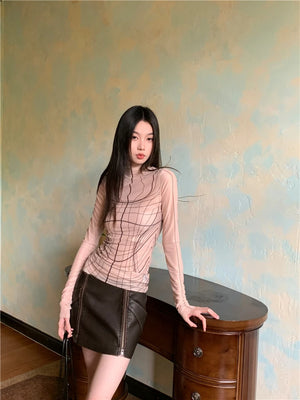 Designer Mesh Long Sleeve Turtleneck Top