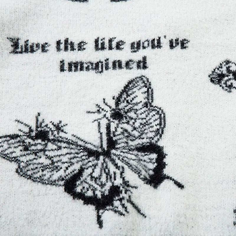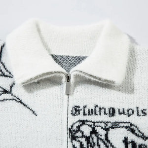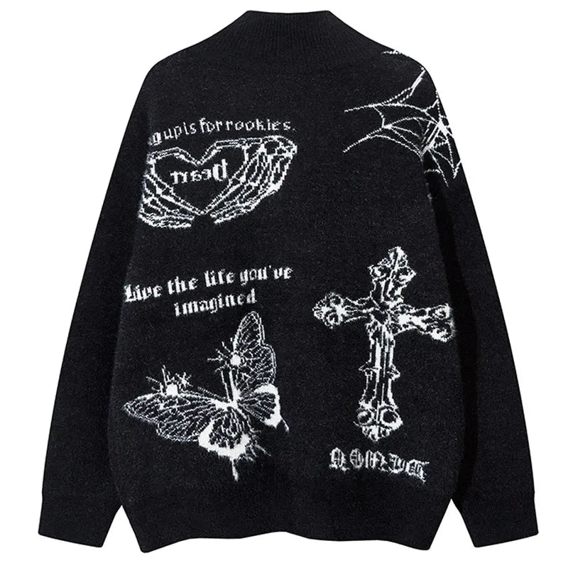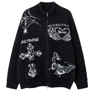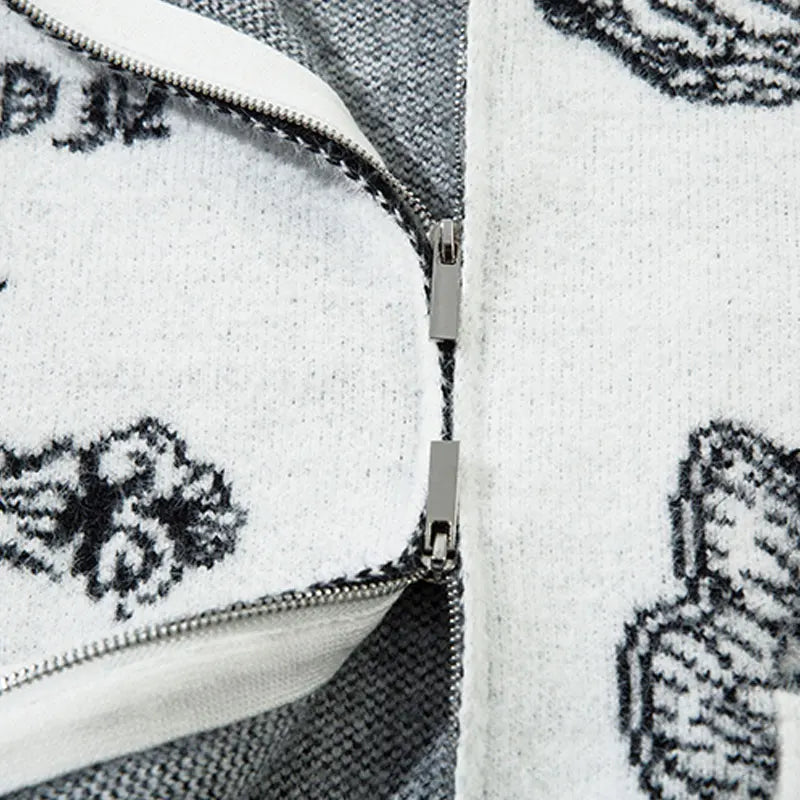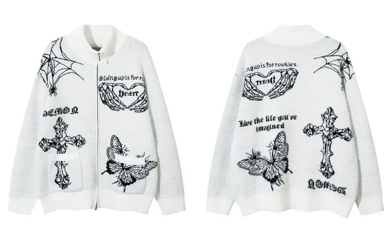 Y2K Knitted Butterfly Double Zip Up Sweater