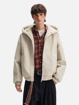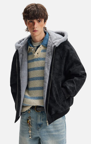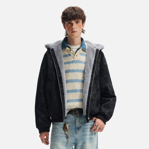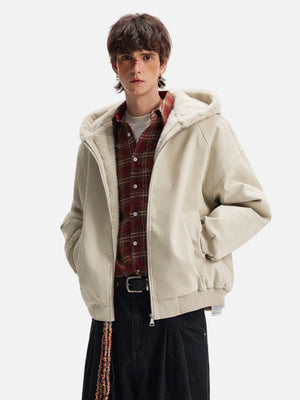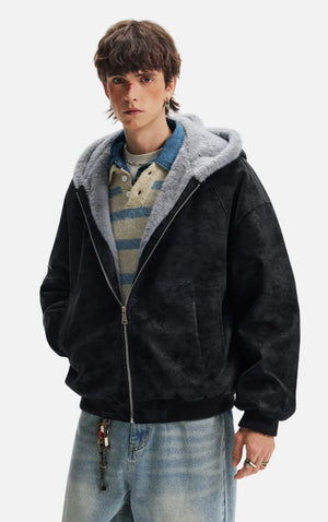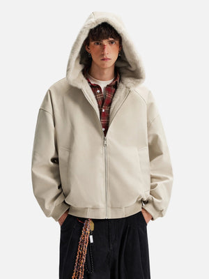 American Lovers Wool Collar Hooded Faux Fur Jacket