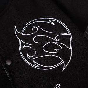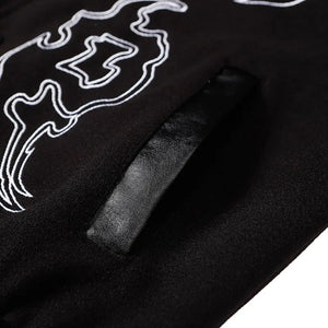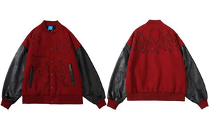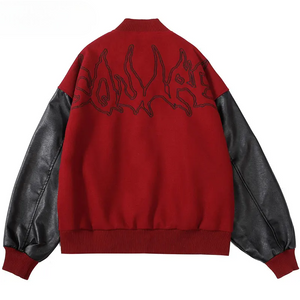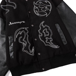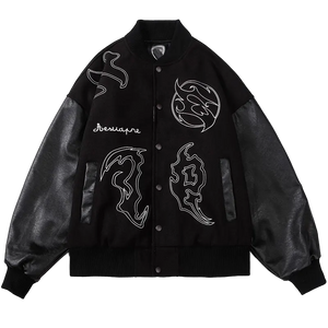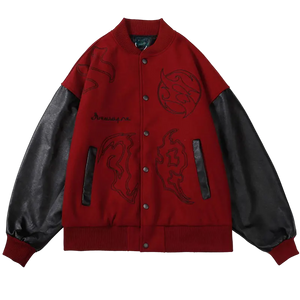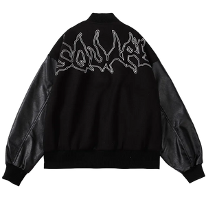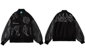 Make a statement with this Y2K-inspired varsity jacket featuring bold, embroidered graphics and contrast faux leather sleeves for an effortlessly cool look.