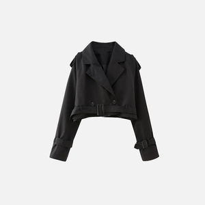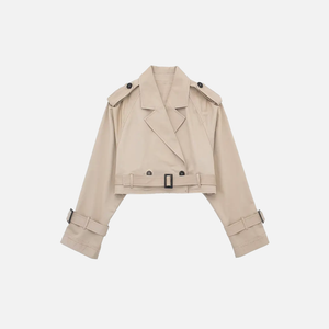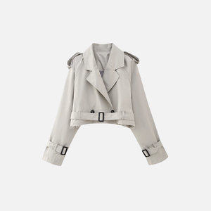 Old Money Style Belted Cropped Trench Jacket