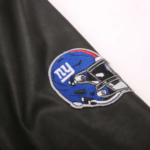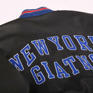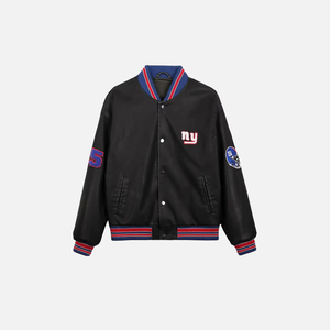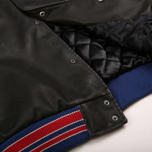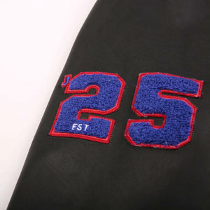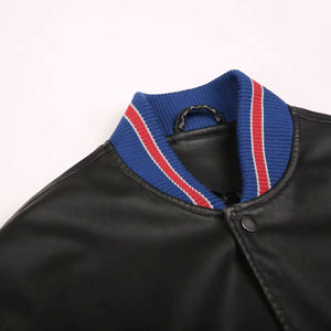 Retro Round Neck Pilot PU Leather Varsity Jacket