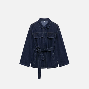 Everyday Essential Lapel Neck With Belt Denim Jacket