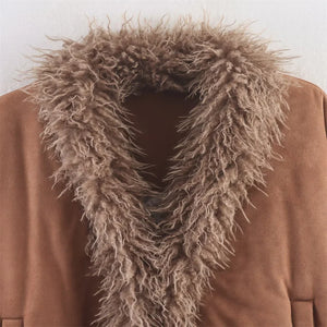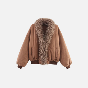 Y2K Cozy Faux Fur V-Neck Collar Cotton Jacket
