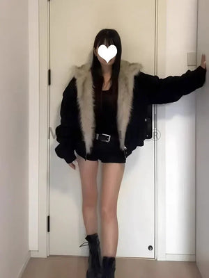 Cozy Y2K-inspired padded winter coat with a plush fur collar, bold silhouette, and warm insulation for stylish cold-weather comfort.